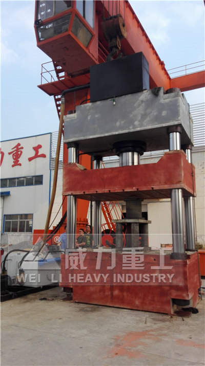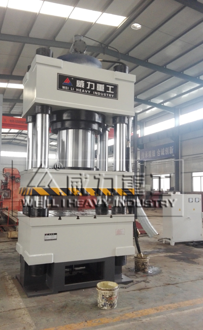 液壓機由主機及控制機構兩大部分組成。液壓機主機部分包括機身、主缸、頂出缸及充液裝置等。動力機構由油箱、高壓泵、低壓控制系統(tǒng)、電動機及各種壓力閥和方向閥等組成。動力機構在電氣裝置的控制下,通過泵和油缸及各種液壓閥實現能量的轉換,調節(jié)和輸送,完成各種工藝動作的循環(huán)。液壓缸:將液壓能轉化為機械能液壓傳動是利用液體壓力來傳遞動力和進行控制的一種傳動方式。液壓裝置是由液壓泵,液壓缸,液壓控制閥和液壓輔助元件山東威力重工機床有限公司根據客戶需求定制非標液壓機。如下圖參考