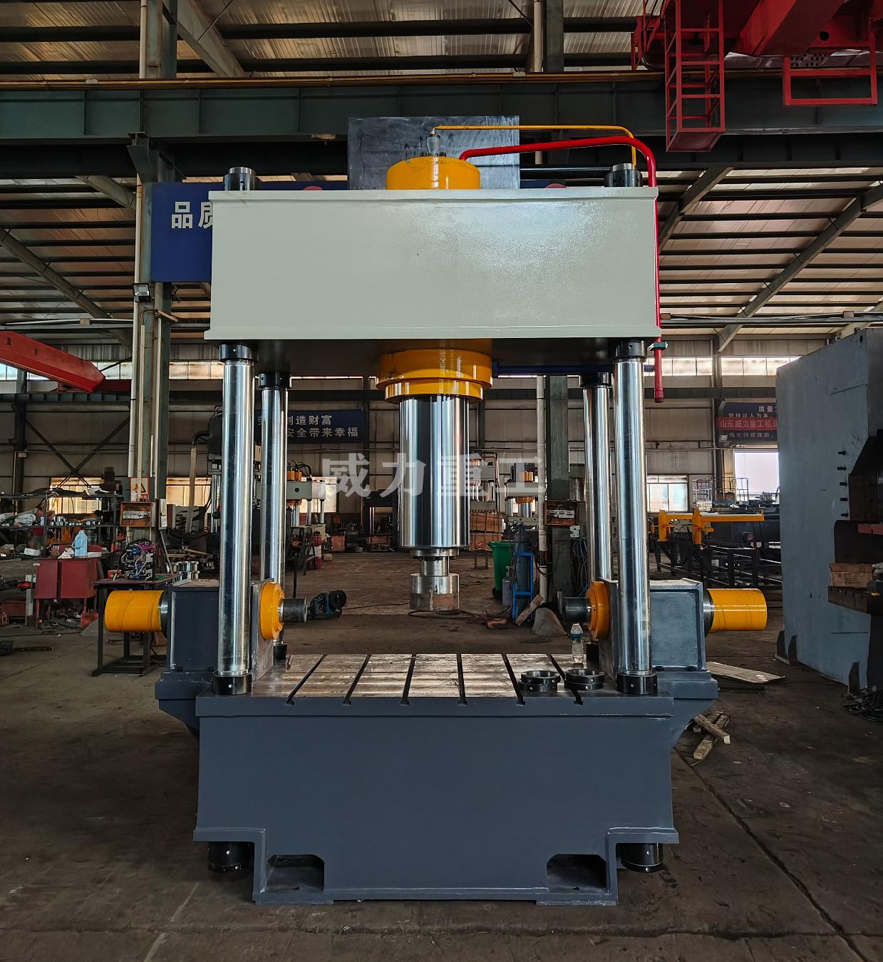 4. 完成工作:達到設定的壓制時間或壓力后,液壓系統(tǒng)停止工作,上梁回升到初始位置,工件取出。